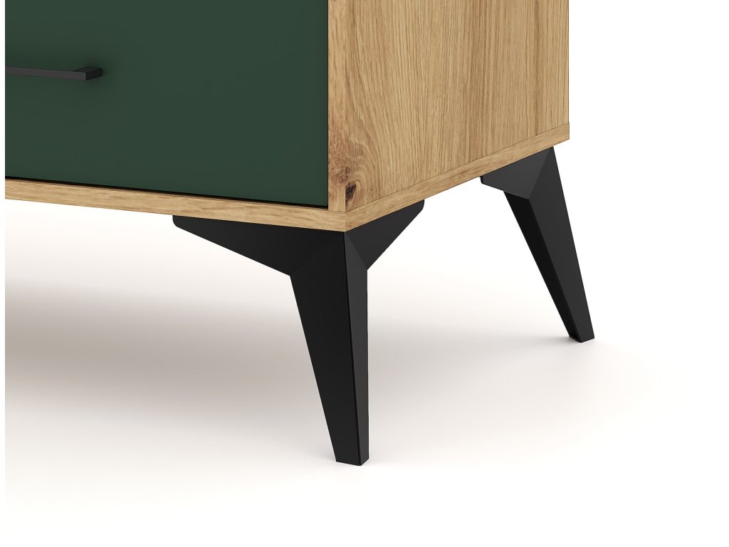 Konferenčný stolík LUGOLLI v prevedení dub artisan/tmavozelená je štýlovým doplnkom do moderného interiéru. Ponúka kombináciu otvoreného úložného priestoru a praktického šuplíka, čím zabezpečuje dostatok miesta na odkladanie vecí. Vďaka kovovým nožičkám v čiernej farbe pôsobí elegantne a stabilne. Ideálny na pohodlné usporiadanie obývacej izby s dôrazom na funkčnosť a dizajn.