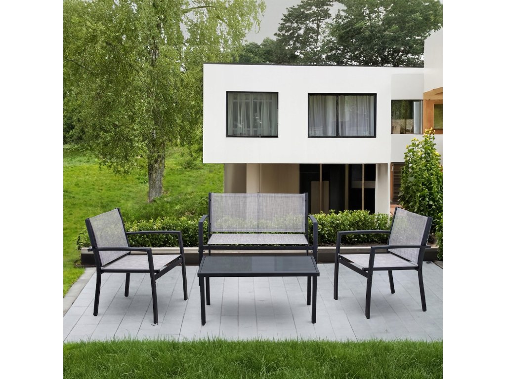 Kovové záhradné sedenie s 2 kreslami a konferenčný stolík - sivá