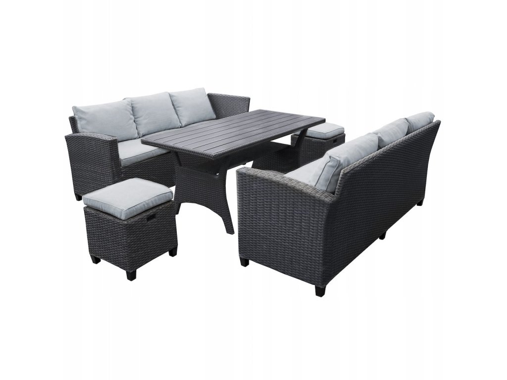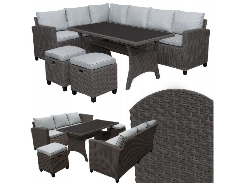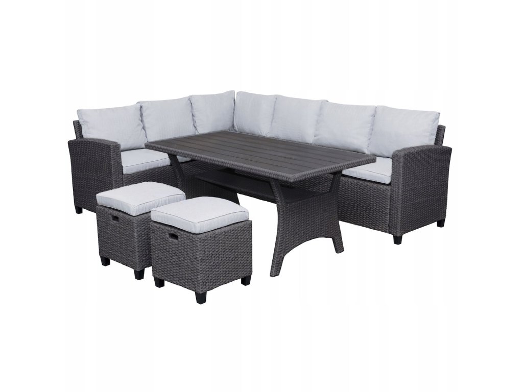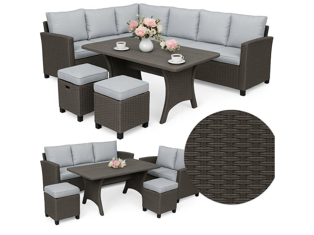 Rohová sedacka so stolom a 2 taburetkami z technoratanu
