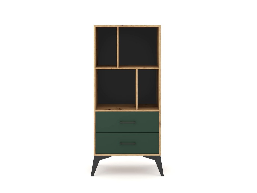 Vďaka kombinácii prírodného dreva a tmavozelenej farby pôsobí nadčasovo a ľahko sa začlení do rôznych typov interiérov – od minimalistických až po industriálne. Robustná konštrukcia z kvalitných materiálov zabezpečuje dlhú životnosť a odolnosť voči každodennému používaniu.