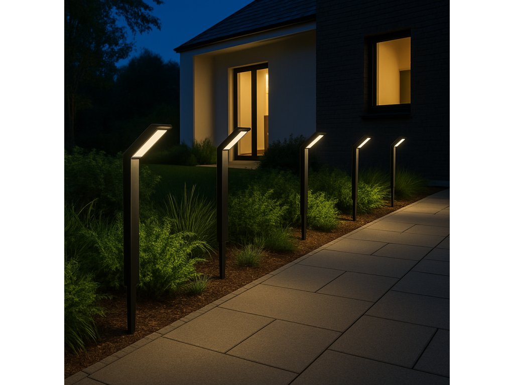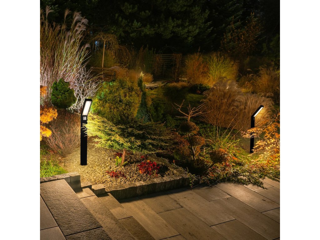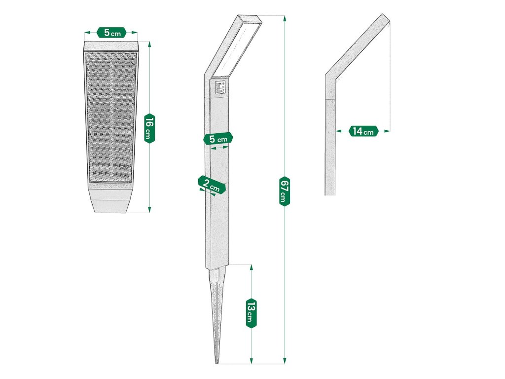 Táto minimalistická solárna lampa s rozmermi 67 ×5 ×2 cm v čiernej farbe je ideálna na osvetlenie záhrady alebo chodníka.